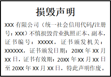 營(yíng)業(yè)執(zhí)照損毀聲明