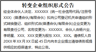 轉(zhuǎn)變企業(yè)組織形式公告