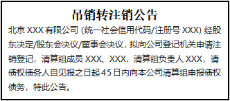 吊銷轉(zhuǎn)注銷公告