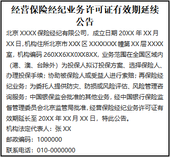 經(jīng)營保險經(jīng)紀(jì)業(yè)務(wù)許可證有效期延續(xù)公告
