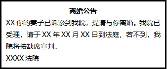 XX你的妻子已訴訟到我院,提請(qǐng)與你離婚。我院已受理,請(qǐng)于XX年XX月XX日到法庭,若不到,我院將按缺席宣判。