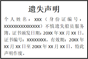 船員服務(wù)簿遺失聲明