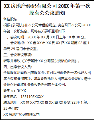 XX房地產(chǎn)經(jīng)紀(jì)有限公司20XX年第一次股東會會議通知