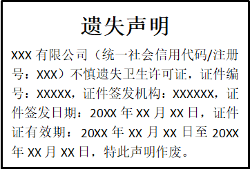 衛(wèi)生許可證遺失聲明
