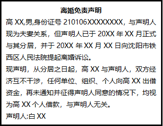 離婚免責(zé)聲明